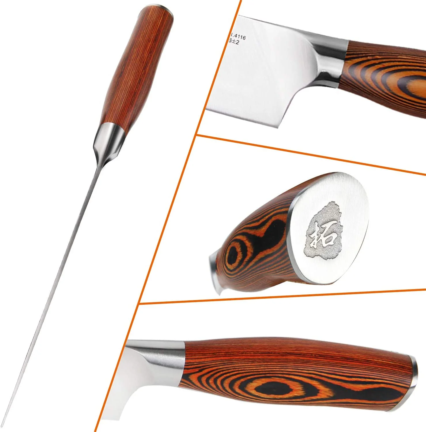 Crafted from specially forged high-carbon German stainless steel, this knife undergoes advanced vacuum heat-treatment and nitrogen cryogenic tempering, ensuring exceptional strength, flexibility, and edge retention. The result is a blade that stays sharper longer, resists rust and corrosion, and delivers maximum cutting performance through every meal prep.